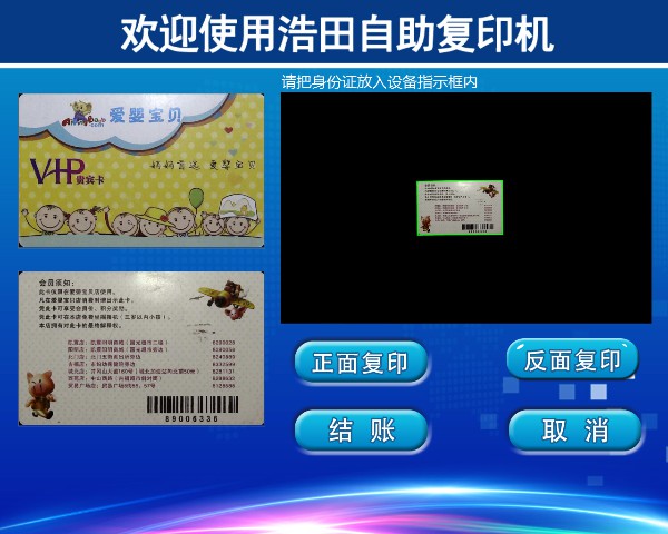 把身份證反面放入掃描框,點擊【反面復印】,左側顯示完成后可點擊【結賬】